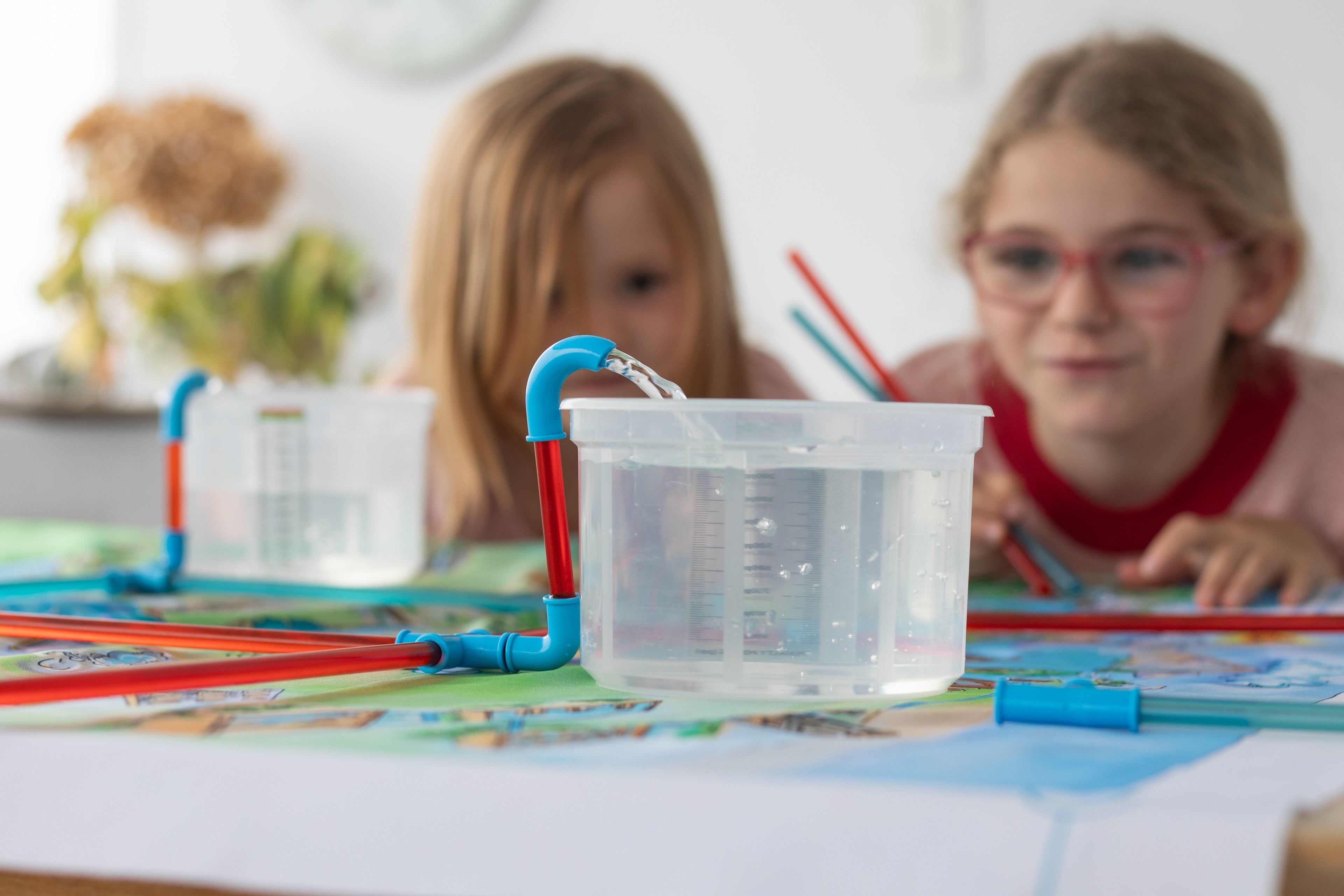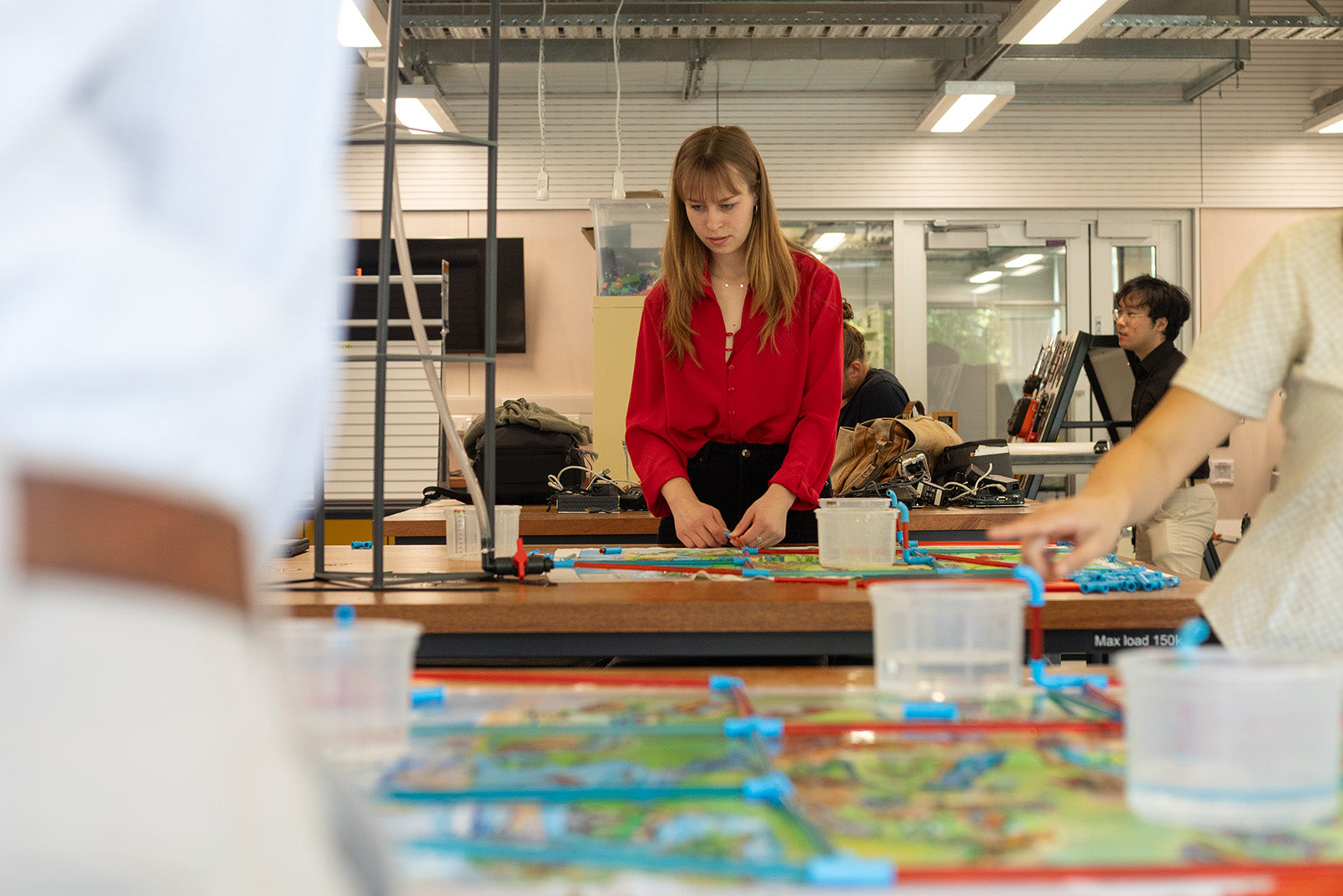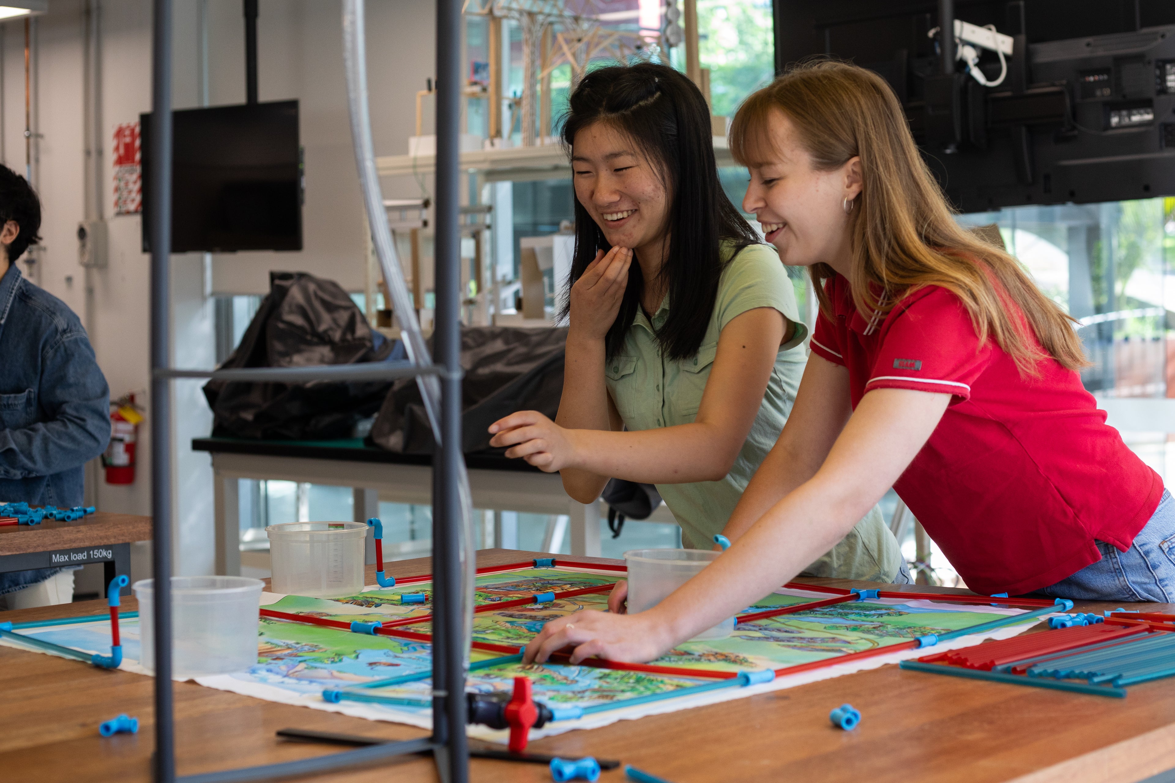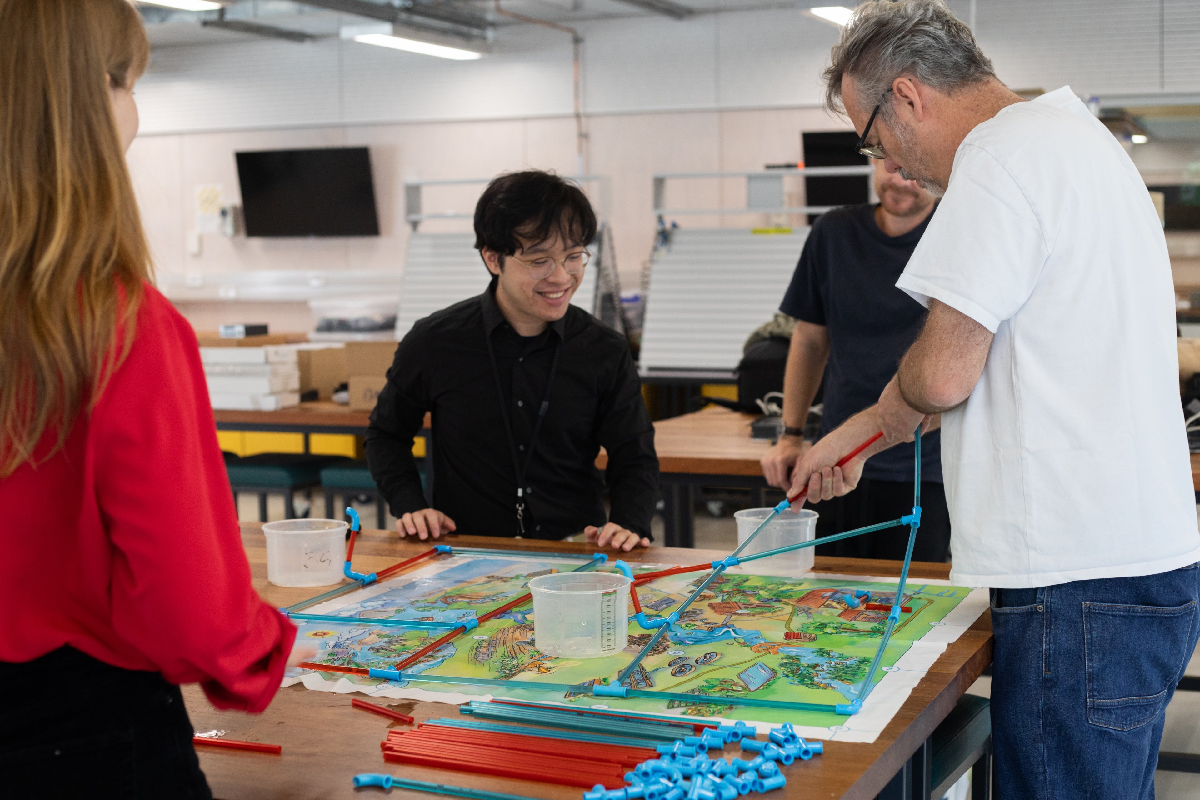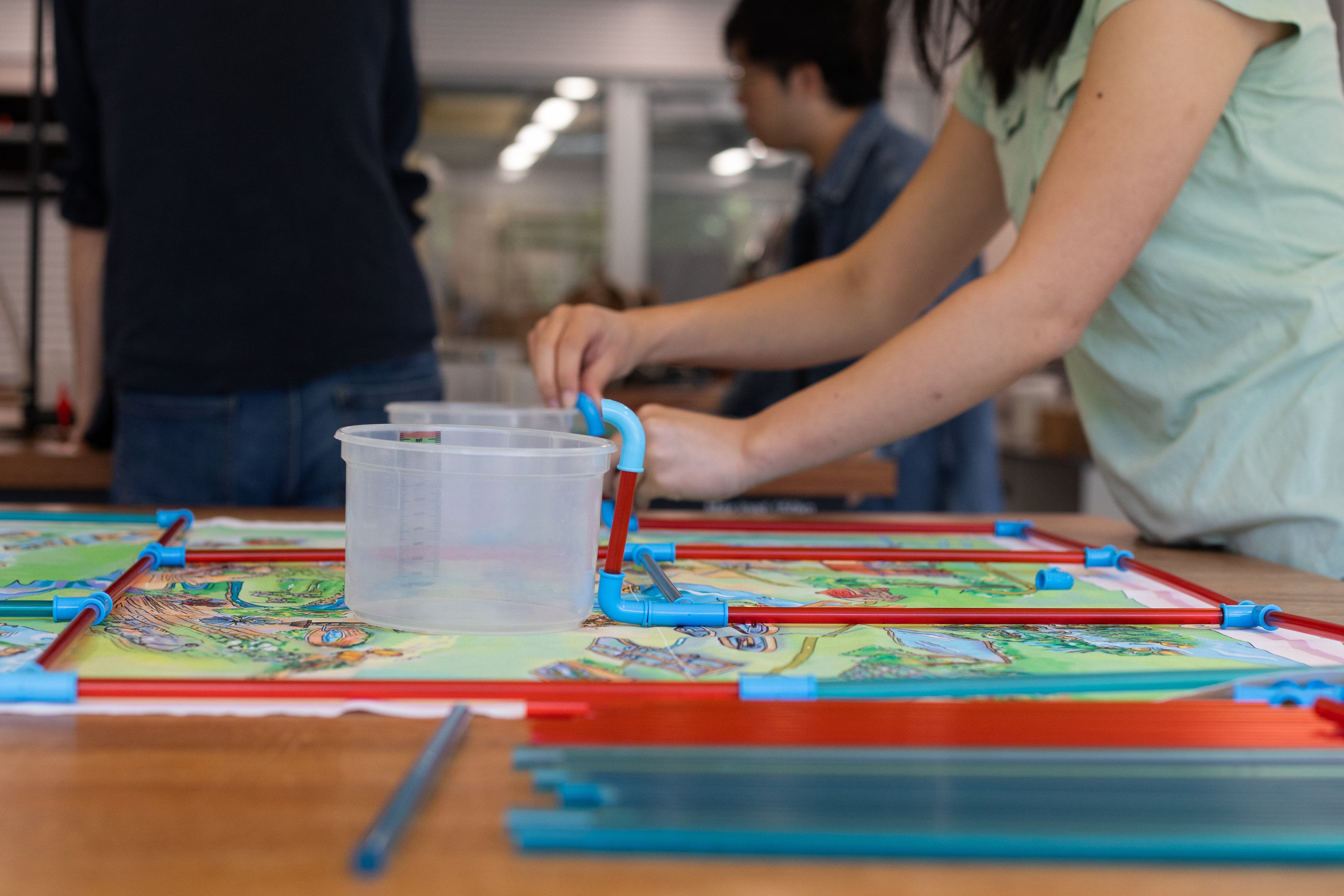 participants build a pipe network using two different pipe diameters and special